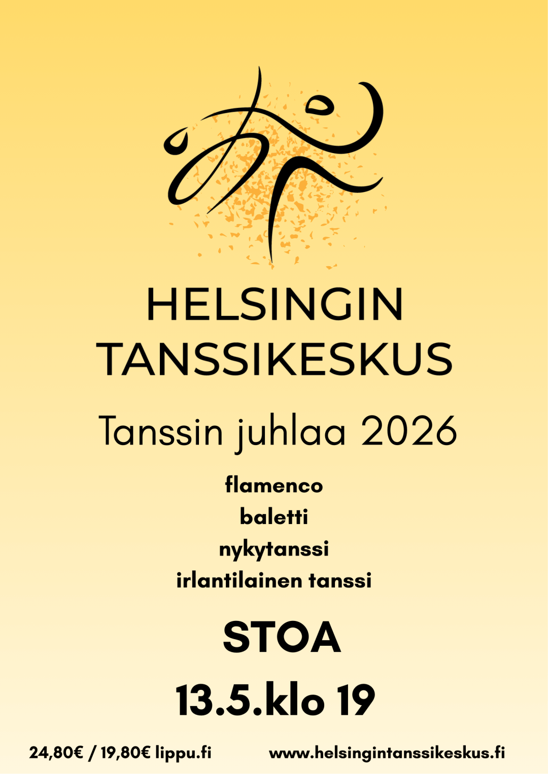 Liput: 24,80€ / 19,80€ osoitteesta Tanssin juhlaa – Liput ja ovelta tuntia ennen esitystä