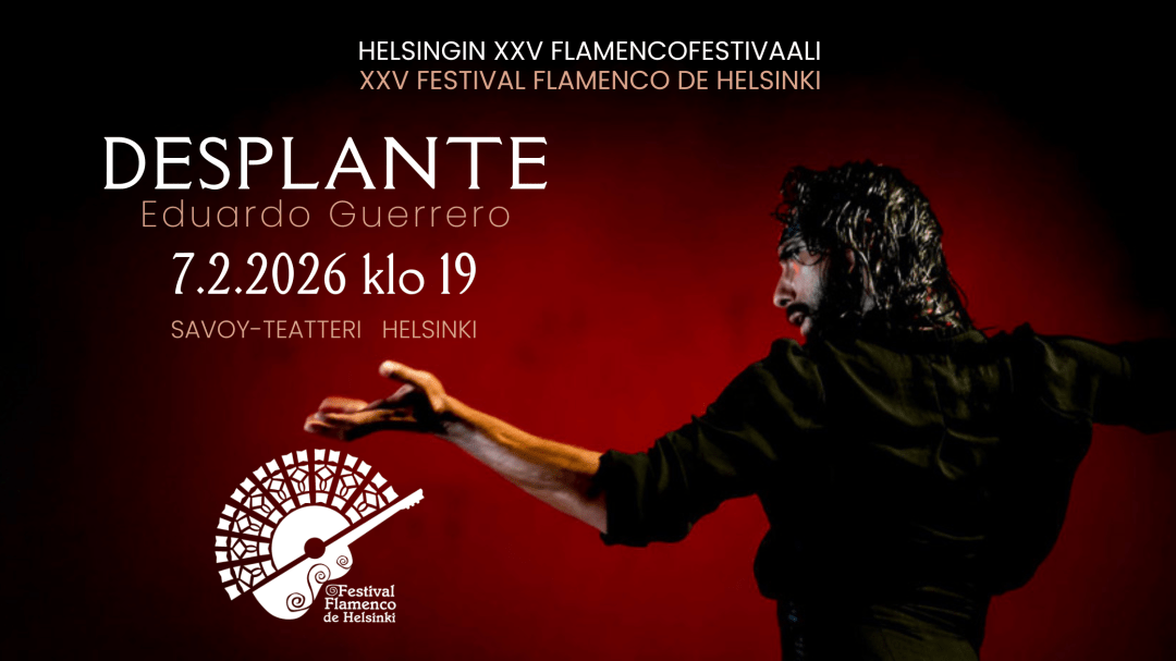 Helsingin Flamencofestivaalin pääesiintyjänä nähdään yksi flamencotanssin tämän hetken suurista nimistä, uskalias uudistaja Eduardo Guerrero (ESP). Hänen Desplante-teoksensa on kunnianosoitus Etelä-Espanjan kaivosalueiden flamencoperinteelle.