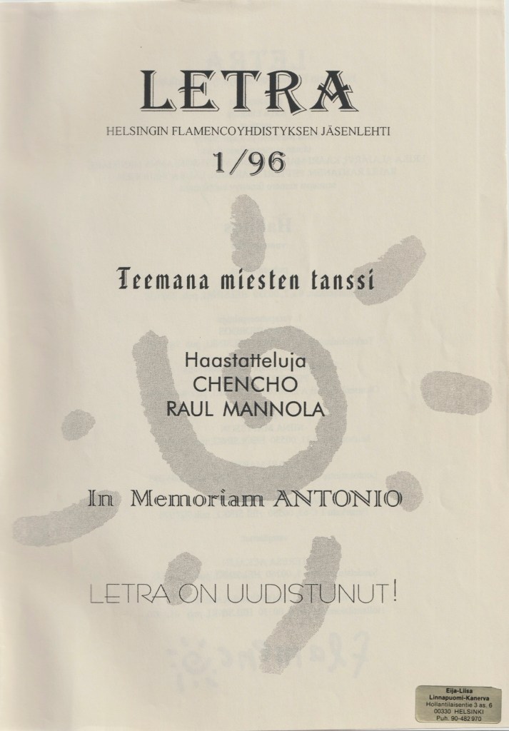 Tervetuloa Helsingin Flamencoyhdistyksen lehden Letran historian pariin! Lehden ensimmäinen numero ilmestyi vuonna 1993 yhdistyksen aktiivien päättäväisten ponnistelujen ansiosta.